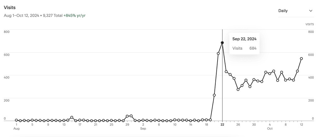 - The Result: Traffic increased from 9 to 175 unique visitors per day, with multiple blog posts now ranking on Google.